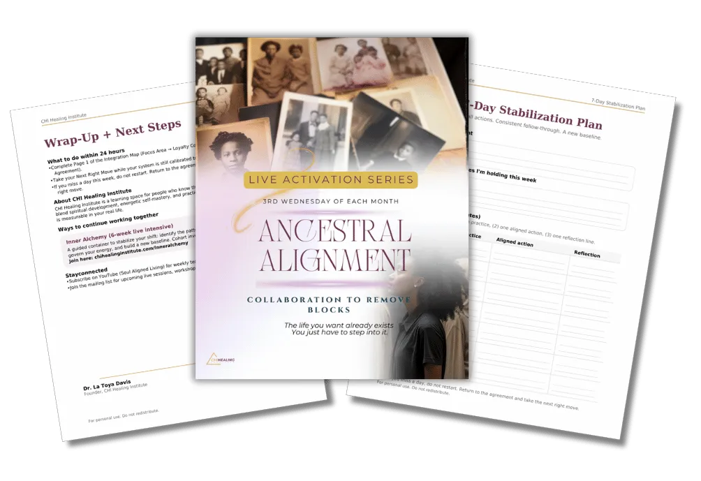 Dr. La Toya Davis is a spiritual teacher, intuitive guide, and founder of the CHI Healing Institute. As an Akashic Record Master and Ancestral Lineage Healer, she has helped over 1,000 individuals break free from limiting beliefs, clear energetic blocks, and release the conditioning that has held them back from their fullest potential.